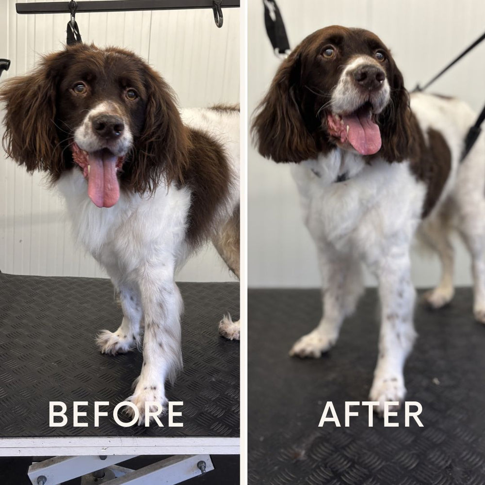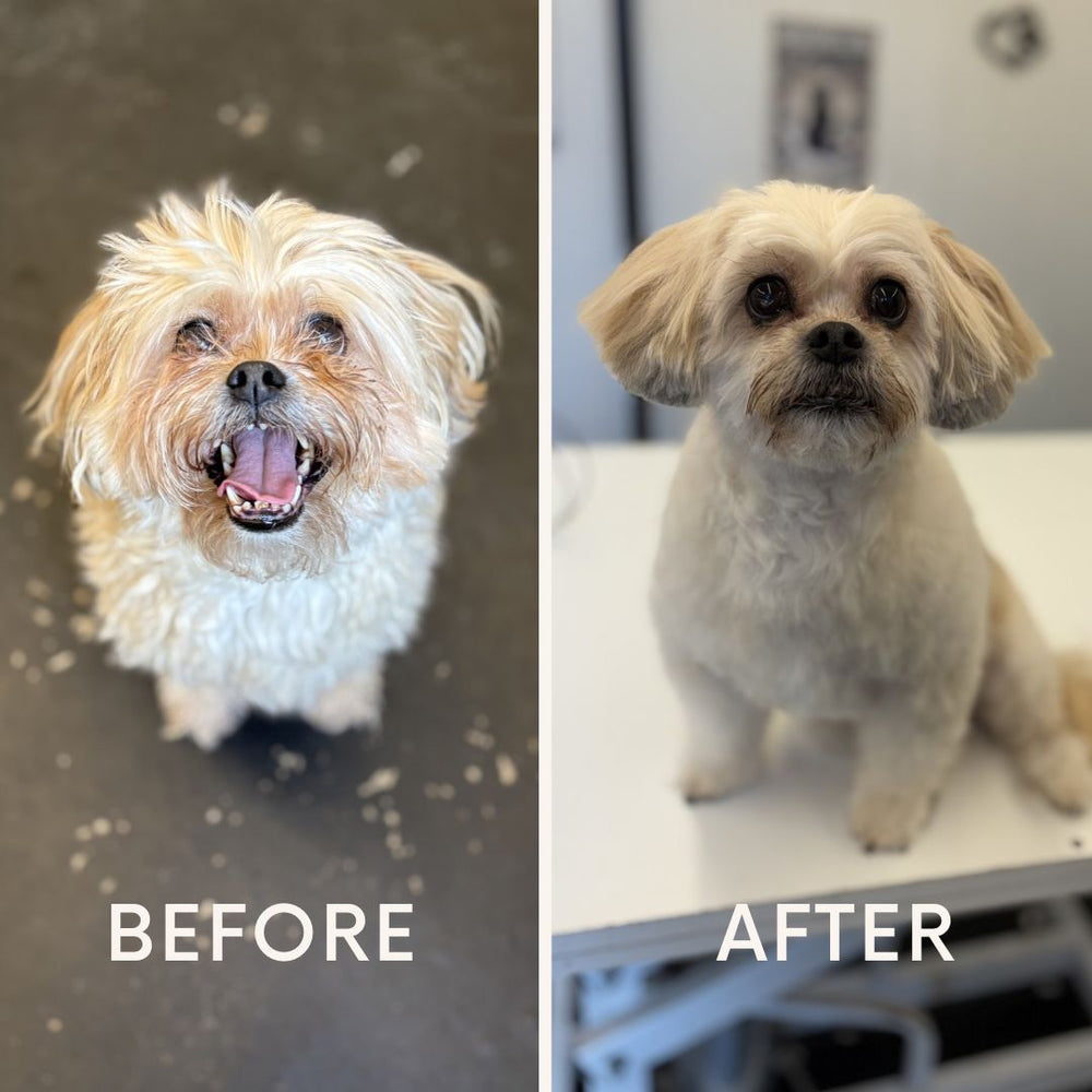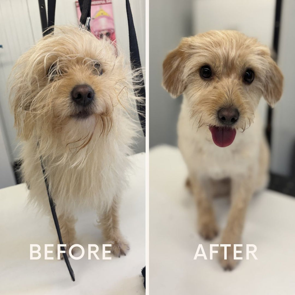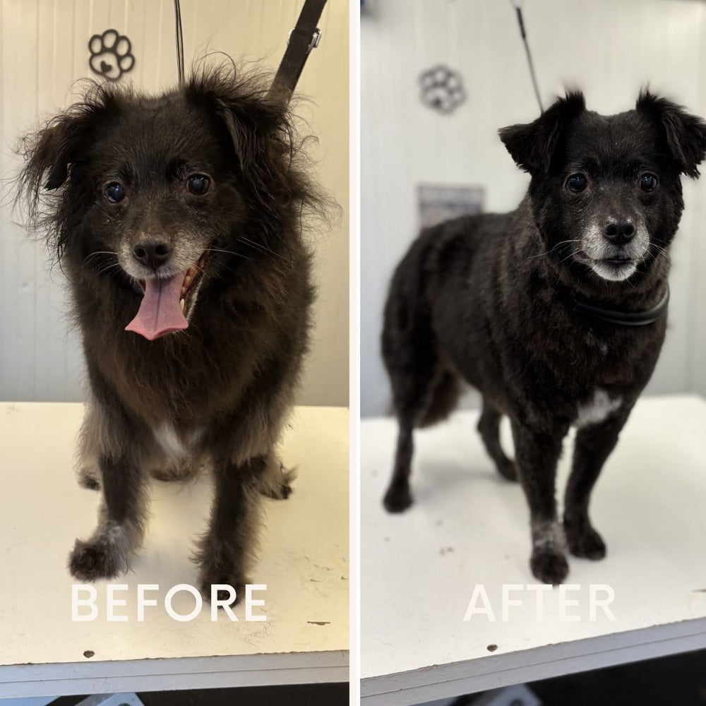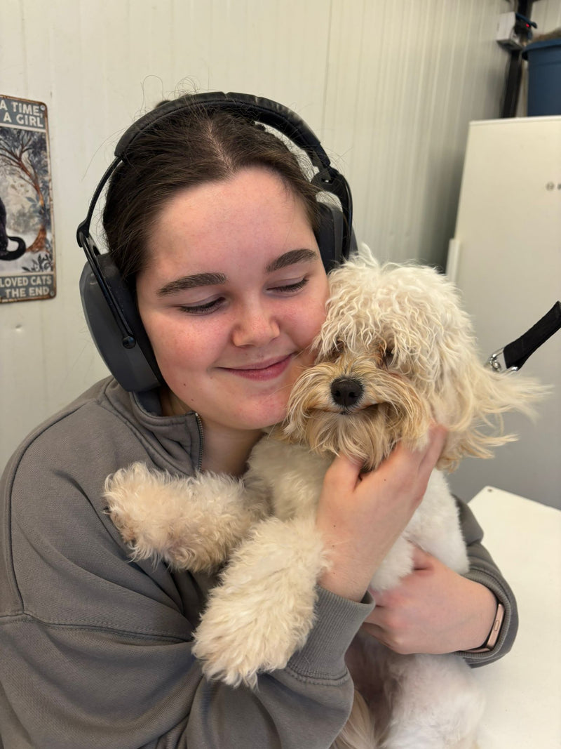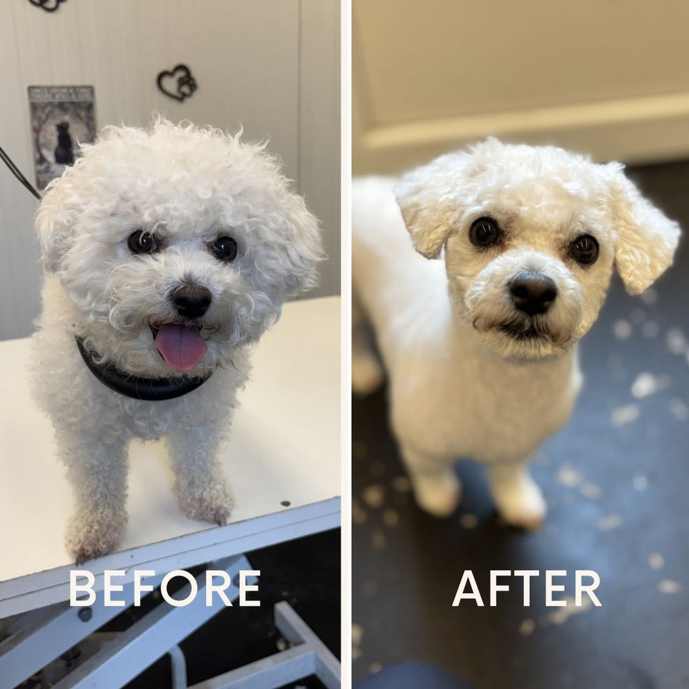 Wij zijn Femke en Niko. Femke is met ruim 5 jaar ervaring, een opleiding dierverzorging en meer dan 130 vijf-sterren reviews de absolute expert in het trimwerk. Niko is de bedenker van de creatieve ideeën achter de schermen, en helpt daarnaast volop mee op de vloer. Terwijl Niko jouw hond wast, droogt en liefdevol op z'n gemak stelt, kan Femke zich 100% focussen op het perfecte model. Door dit unieke teamwork garanderen we een ontspannen 1-op-1 behandeling zonder haast.
