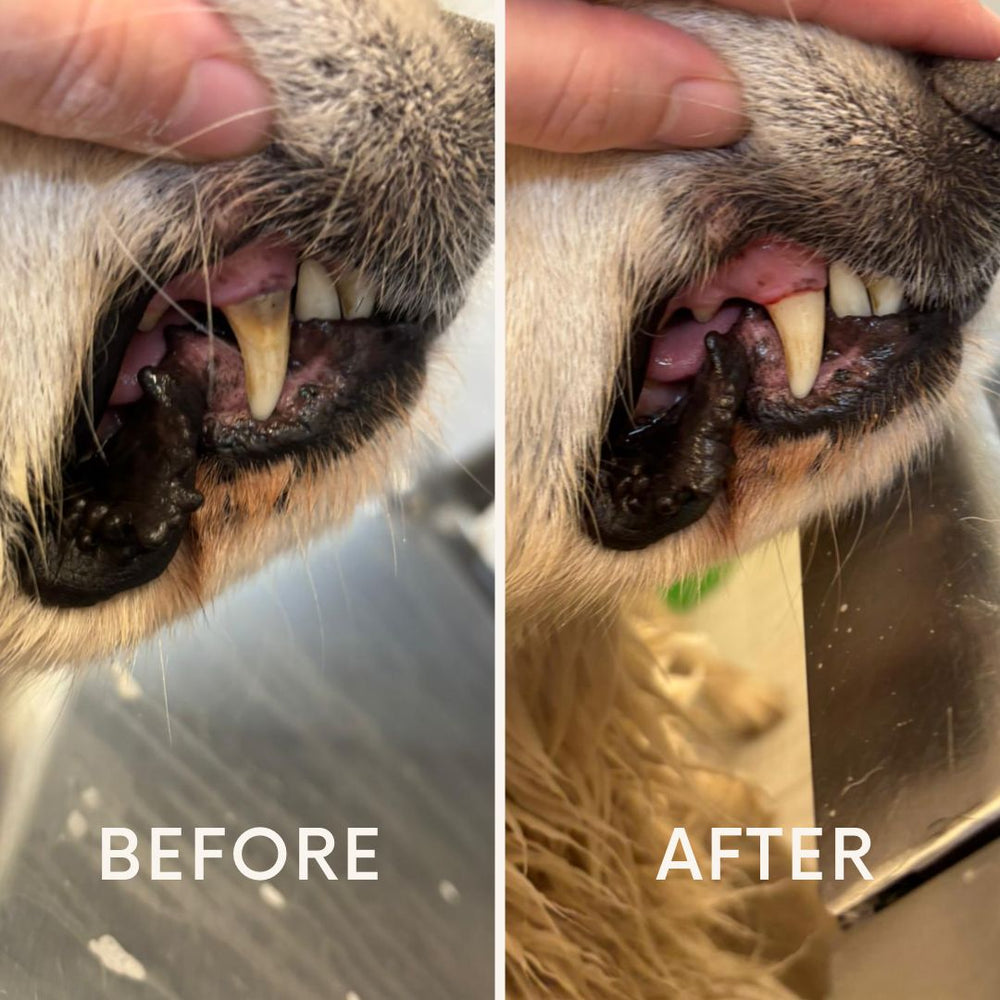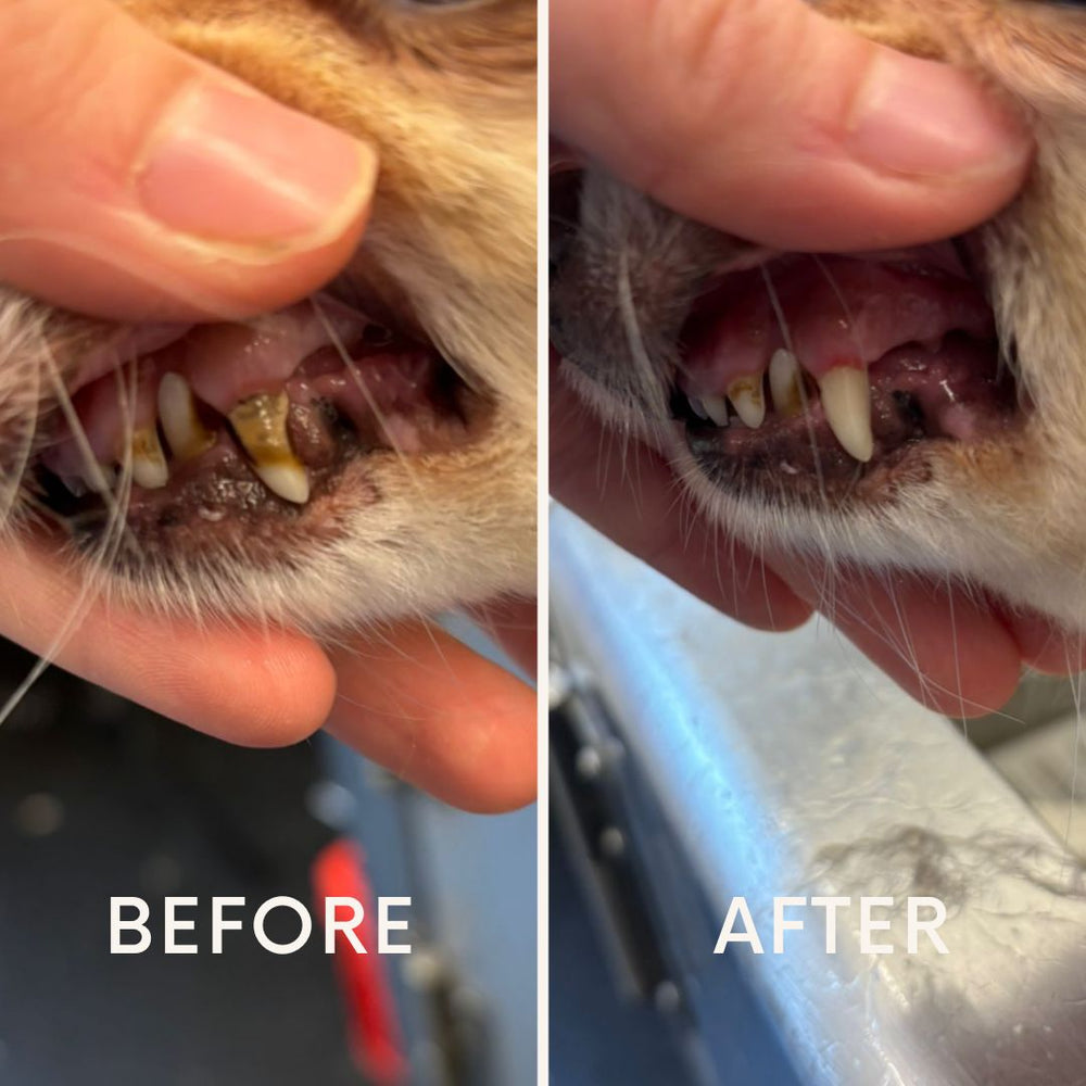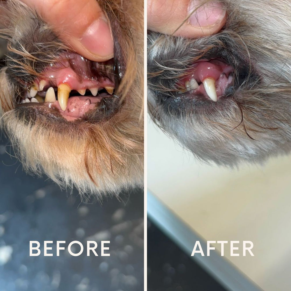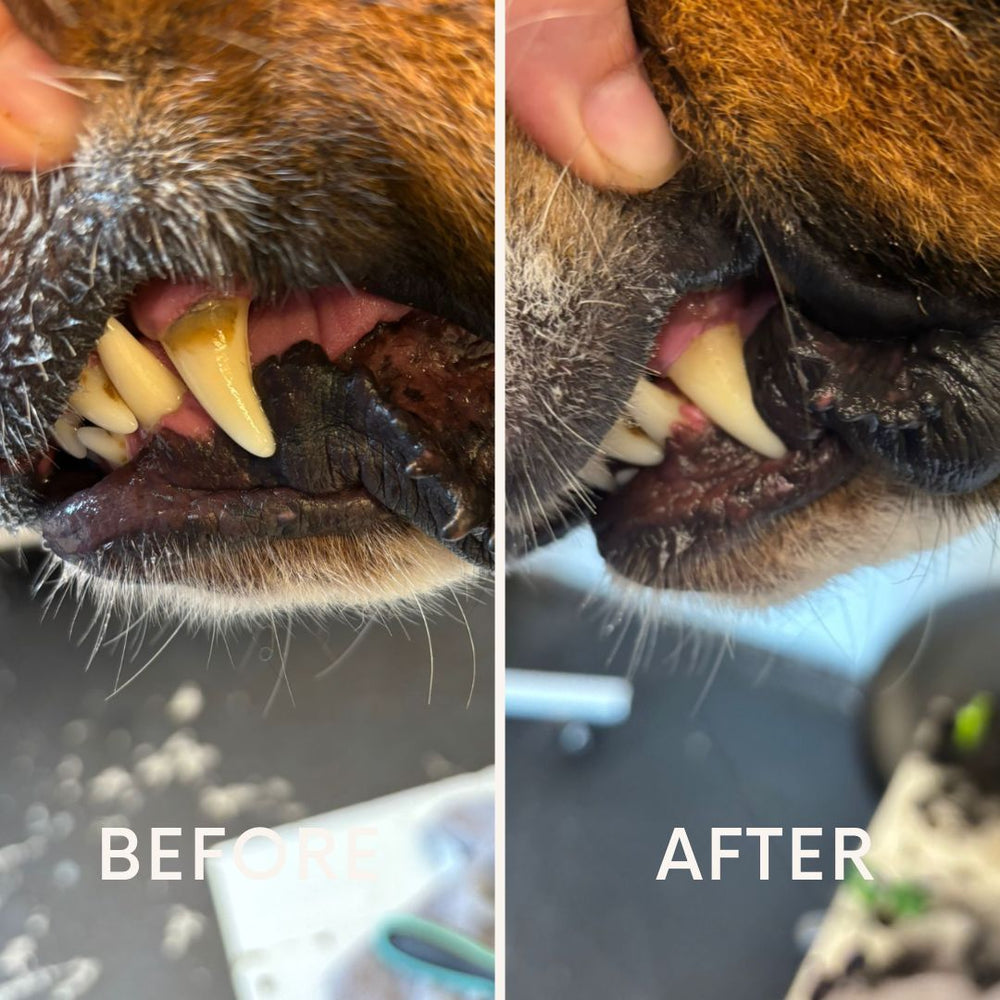 Preventie is de beste (en voordeligste) zorg. Als een gebit verwaarloosd raakt, is een medische reiniging onder narcose bij de dierenarts noodzakelijk. Met eventuele extracties en medicatie lopen die kosten al snel op richting de €600+. Met onze cosmetische APK (€50) houden we het gebit veilig en pijnloos schoon met ultrasone trillingen. Door tandplak en beginnend tandsteen structureel te verwijderen, verklein je de kans op ernstige gebitsproblemen drastisch en bespaar je jouw hond vaak een zware, dure ingreep. Voor het allerbeste, blijvend schone resultaat adviseren wij een behandeling elke 4 weken, maar een frequentie van elke 8 weken is ook voldoende als structureel onderhoud.