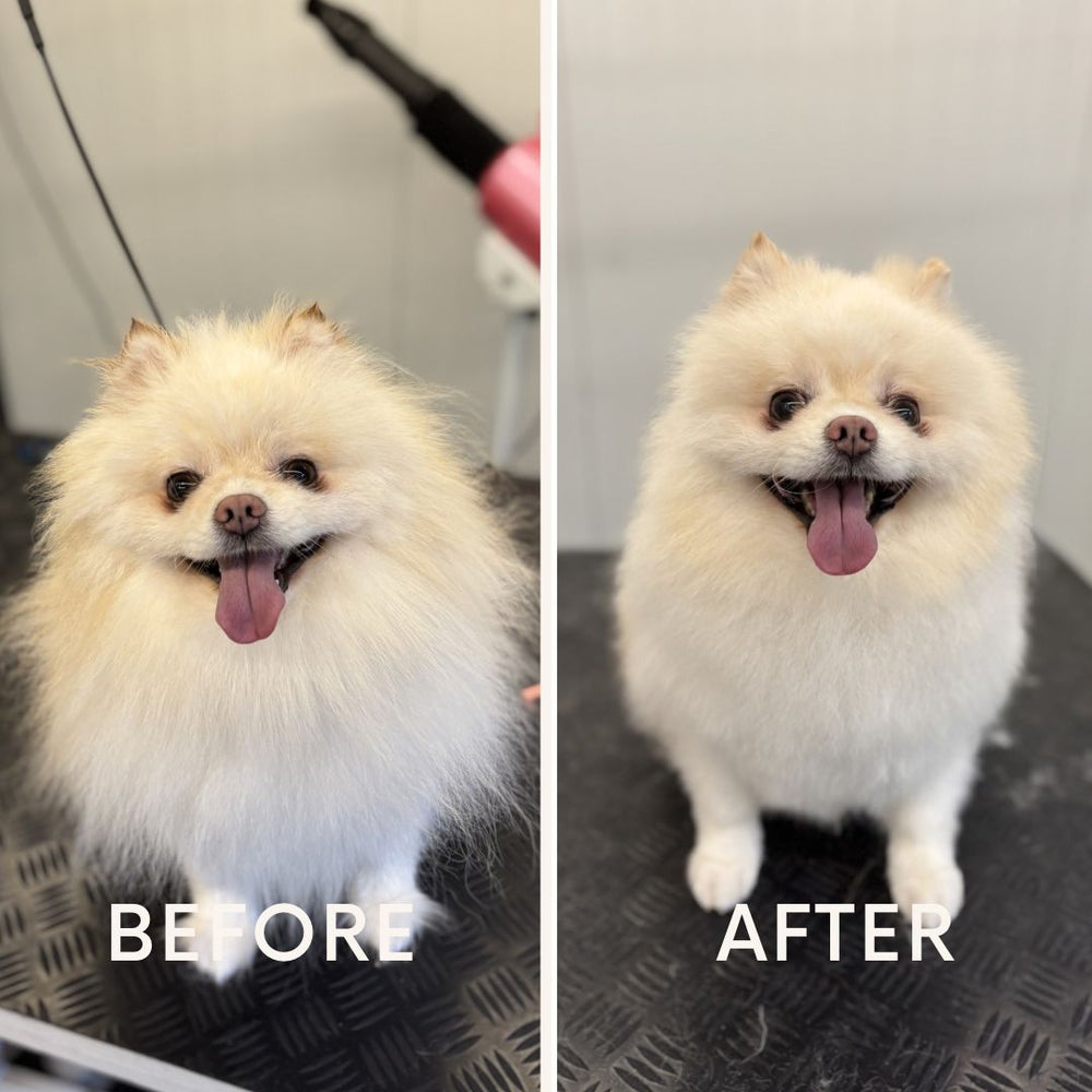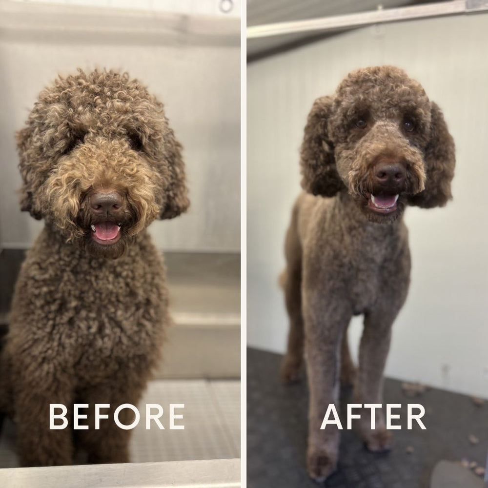Door elke 8 weken te komen, krijgt viltvorming geen kans. Wij wassen, blazen en borstelen de vacht professioneel uit. Hierdoor hoeft uw hond nooit meer kaal geschoren te worden door vervilting.